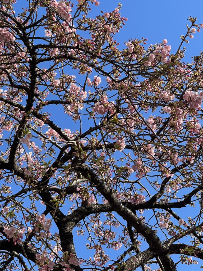 2月中旬ですが、スタッフが早咲きの河津桜を発見いたしました!
